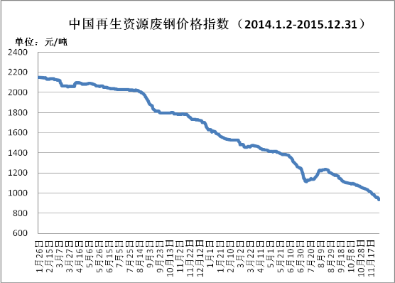 图一:2014年1月至2015年12月废钢价格指数图